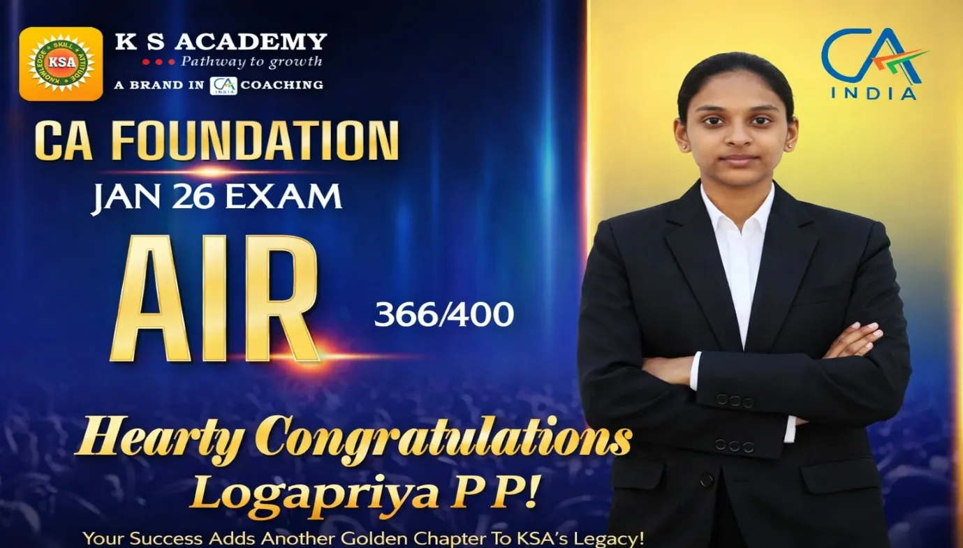 The journey to becoming a Chartered Accountant is demanding, but stories like Logapriya’s demonstrate that success is achievable with the right approach. Institutions such as KS Academy, guided by the vision of CA K. Saravanan (Sara Sir), continue to support aspiring professionals by providing structured education and mentorship.